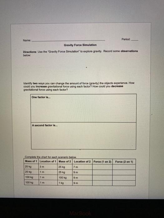 Solved Name Period Gravity Force Simulation Directions Chegg Com