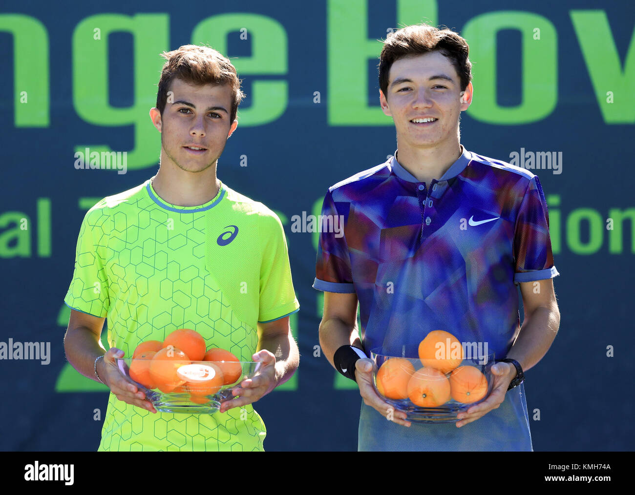 Plantation Florida Usa 10th Dec 2017 Hugo Gaston Fra Left Winner Of The Boys 18s Final Of The 2017 Orange Bowl International Tennis Championship And Dostanbek Tashbulatov Kaz Right Finalist Pose With